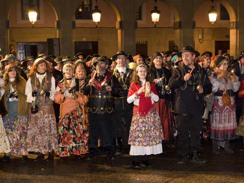 Konpartsek zartagin, burruntzali eta melodia tradizionalen erritmora zeharkatzen dituzte kaleak, hiria soinuz eta kolorez betez.